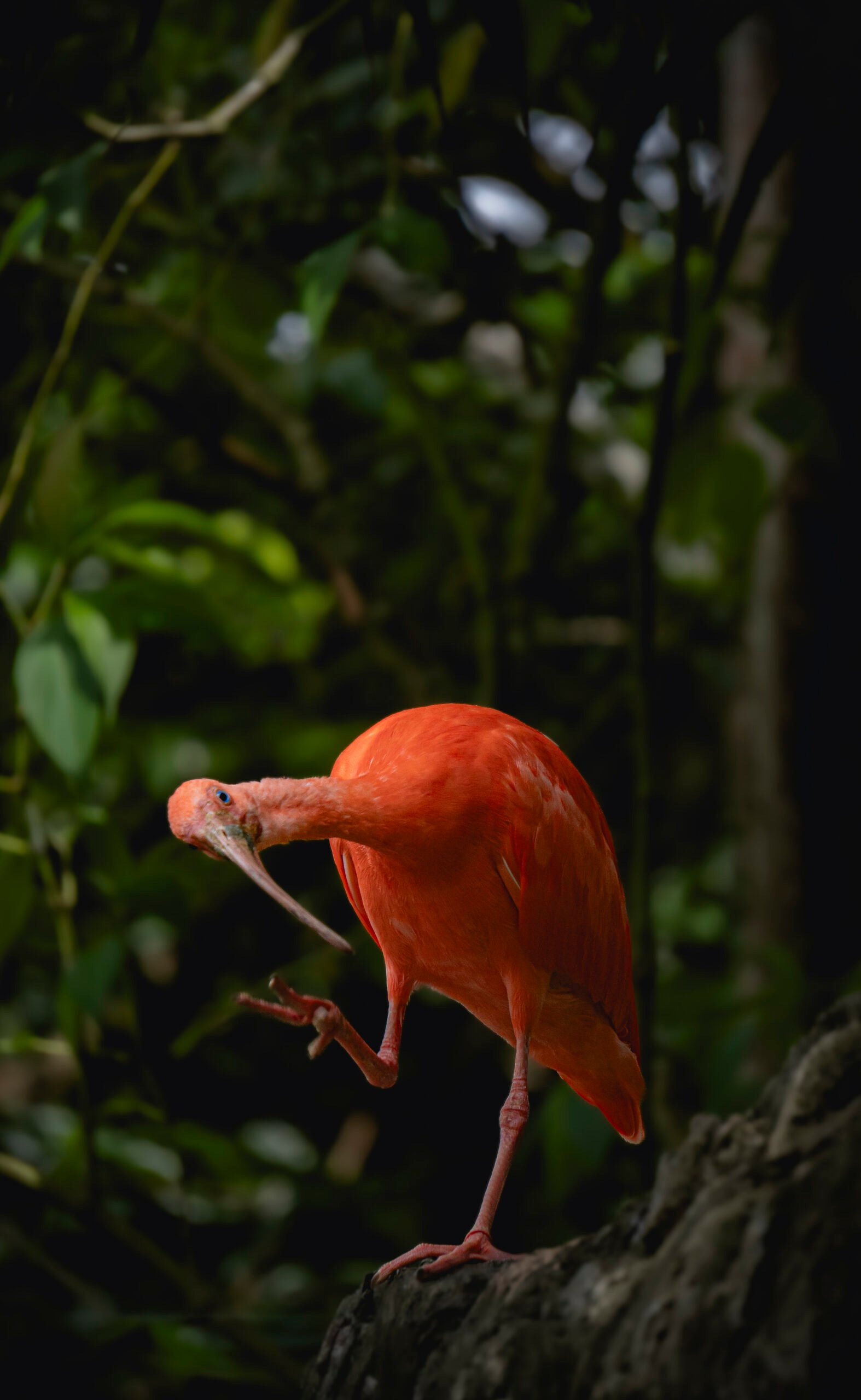 Su plumaje se vuelve escarlata gracias a los pigmentos de los crustáceos que consume.