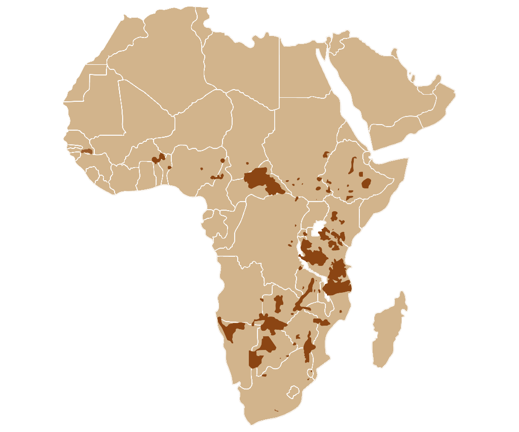 Sabanas, pastizales y algunas zonas semidesérticas del África subsahariana.