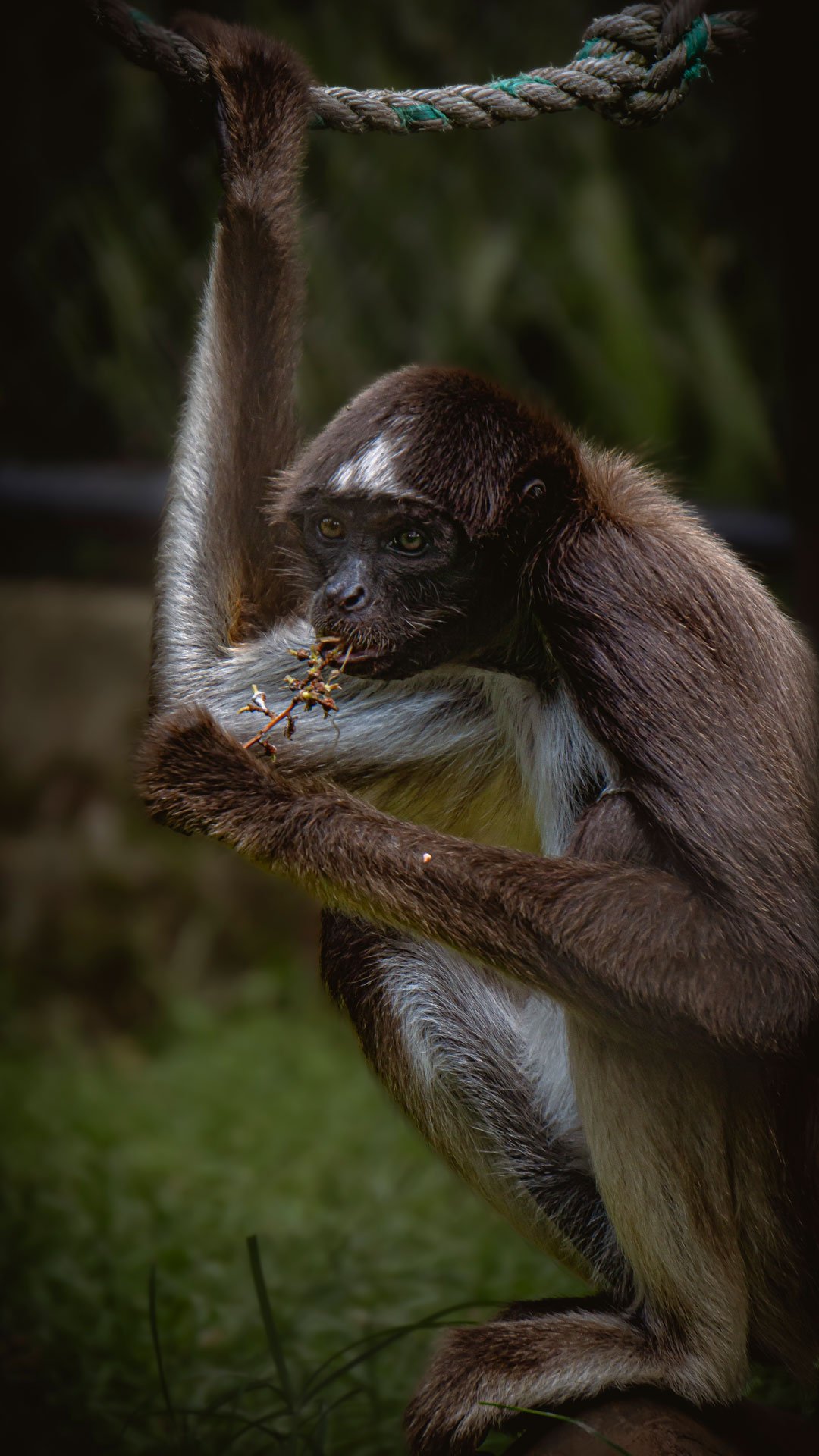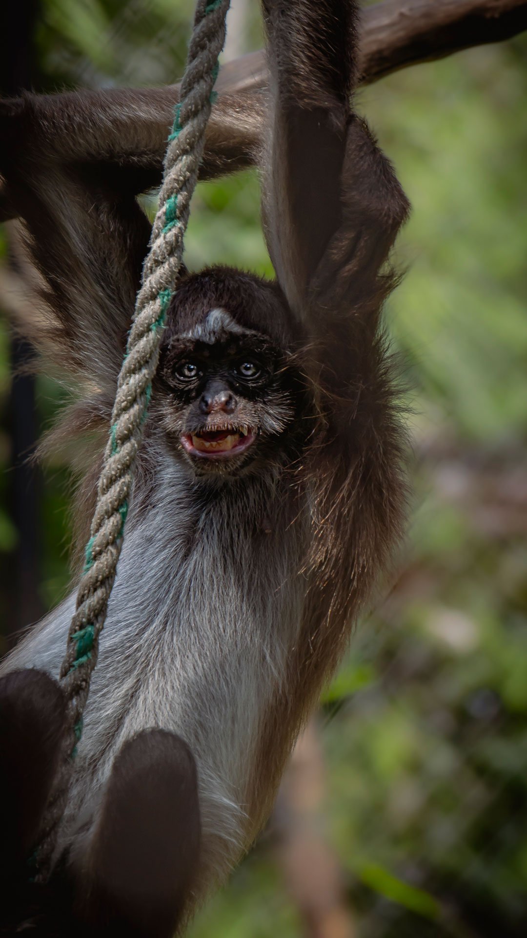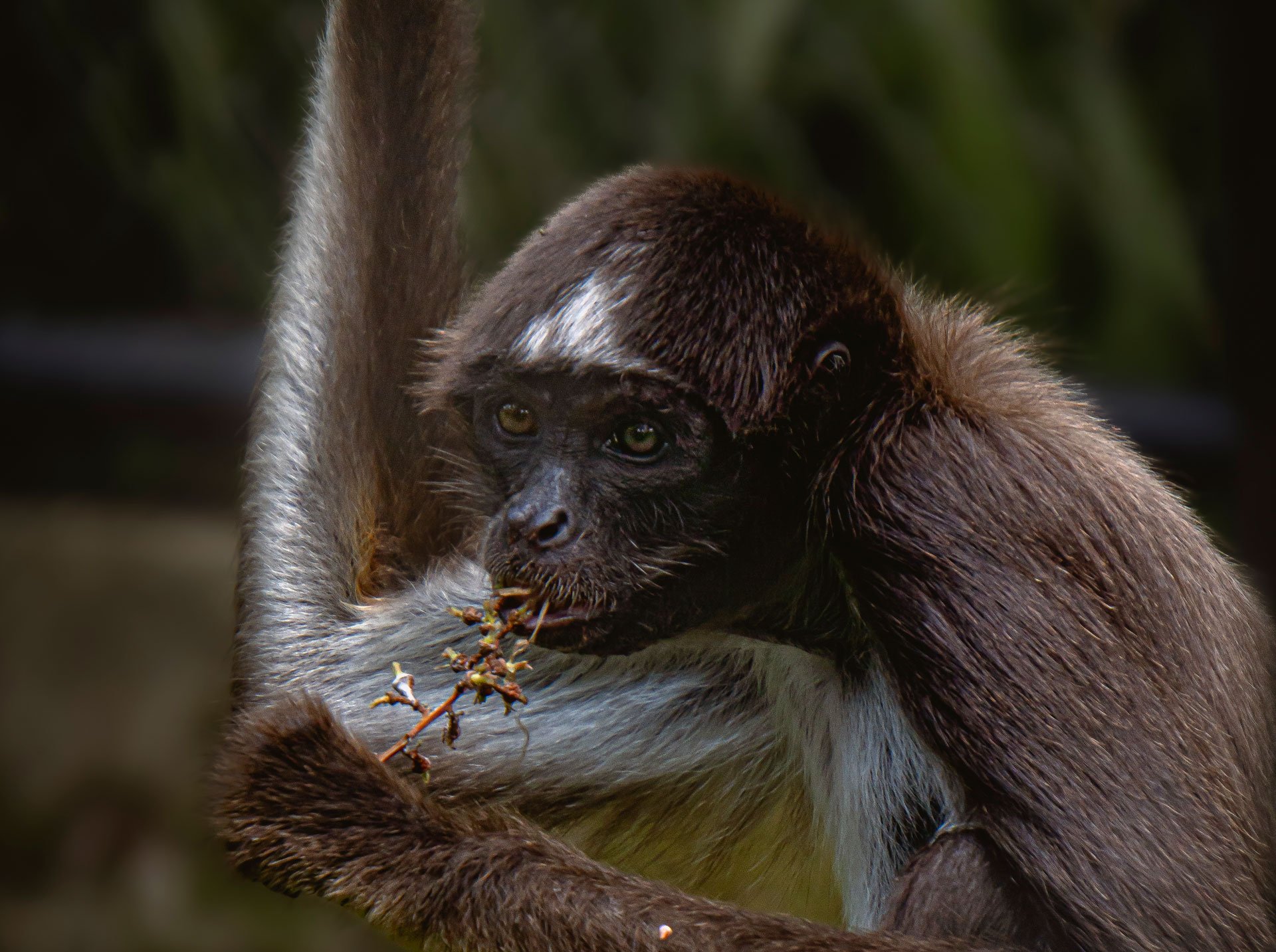 Su cola prensil le permite colgarse, balancearse y manipular objetos con gran precisión.